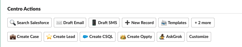 With these diverse options for creating records from Salesforce directly within Slack, Centro empowers users to manage their tasks and streamline their workflow efficiently. Whether you prefer custom message buttons, record block buttons, app home forms, standard functionality, or emoji reactions, Centro provides the tools you need to enhance productivity. Experience the convenience of Centro's record creation features today!