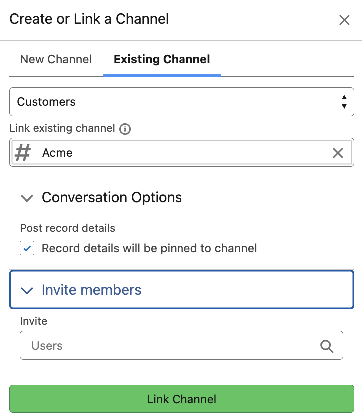 - Connect a Teams Channel or a Chat to a Salesforce record from the Salesforce Lightning component (Create or Link a Channel button) or the Teams Channel & Chats Linking functionality.