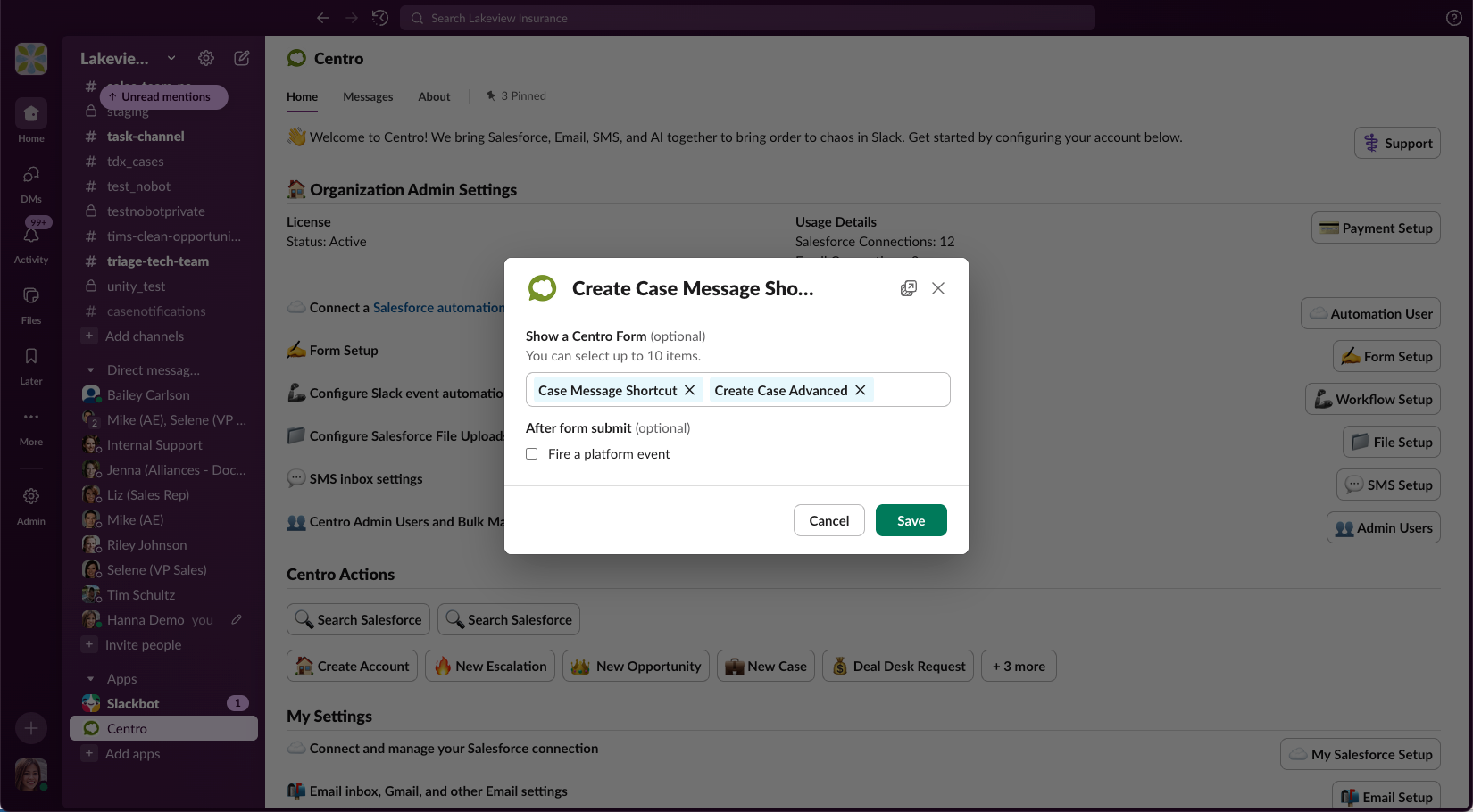 Centro now supports up to 10 Centro Forms per Trigger in Slack. These Centro forms can be a mix of objects, utilizing Automation User or Authenticated Users all from a single Trigger.