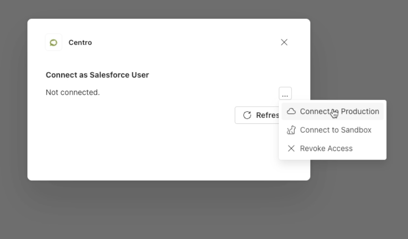 Click the three dots (more options), then choose which Salesforce environment to authenticate:
